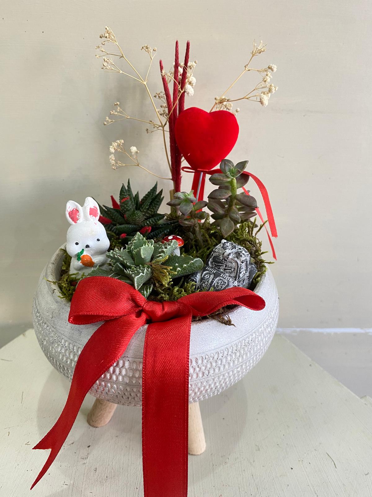 Sevdiklerinizin en özel ve güzel anlarında yanlarında olmak isterseniz, beyaz grafon üzerine yeşilliklerle süslenmiş, kırmızı gerberalardan hazırlanan , ayaklı sepet ile mutluluklarına ortak olabilirsiniz.
